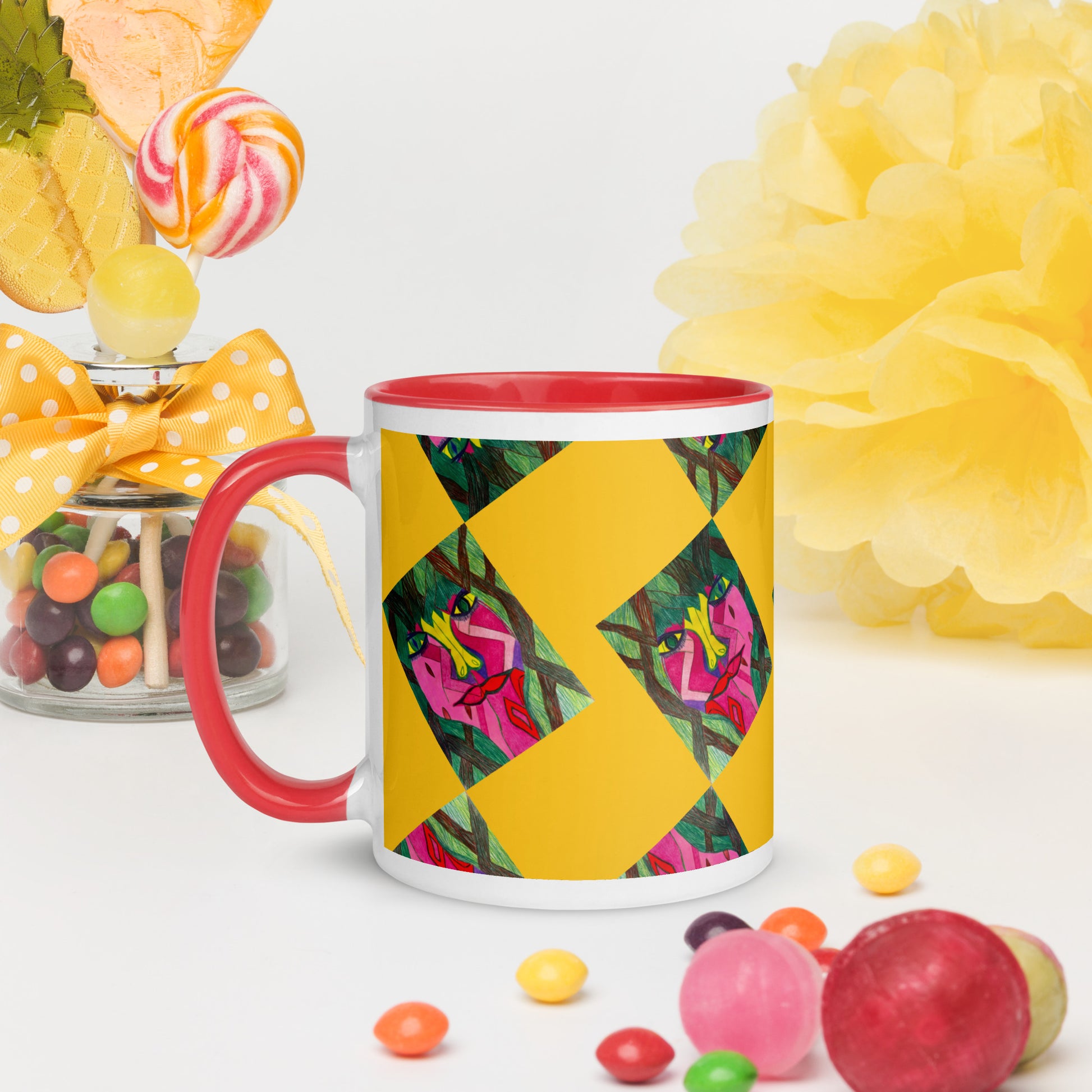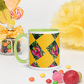 Add a splash of color to your morning coffee or tea ritual! These ceramic mugs not only have a beautiful design on them, but also a colorful rim, handle, and inside, so the mug is bound to spice up your mug rack.