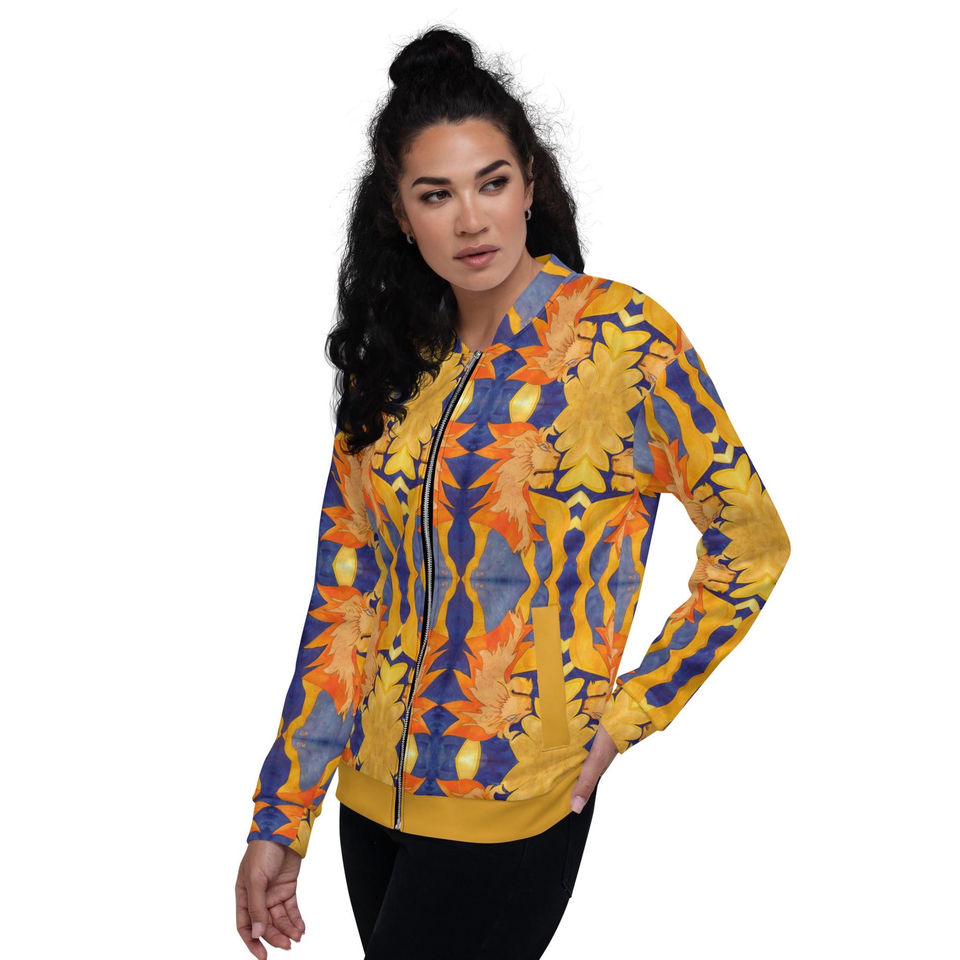 Add a little zing to your wardrobe with this vibrant All-Over Print Bomber Jacket. Wear it on a basic t-shirt, or layer it on top of a warm hoodie—it’ll look great either way. With a brushed fleece inside, and a relaxed unisex fit, this Bomber Jacket is just the stuff of the dreams, so be quick to grab yourself one!