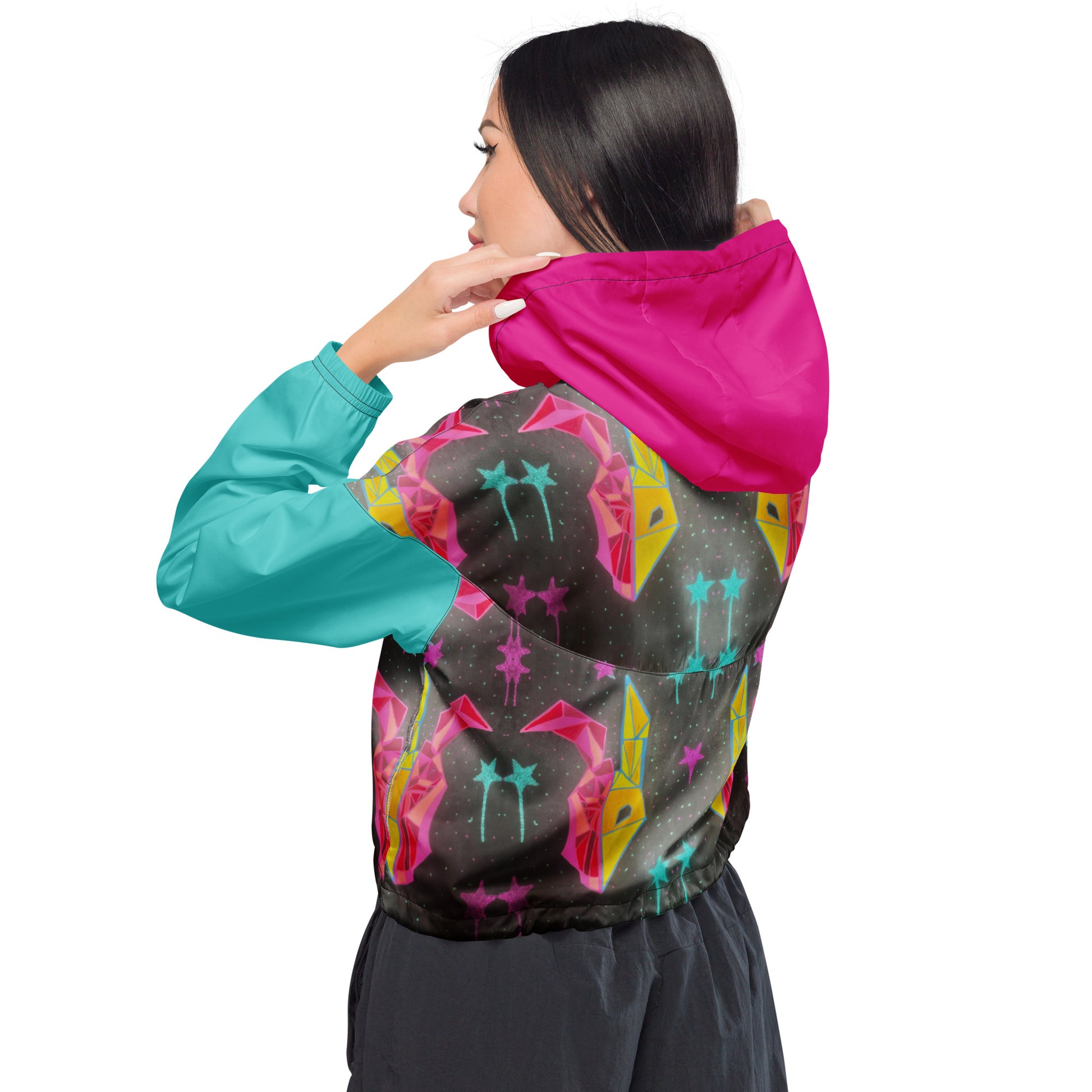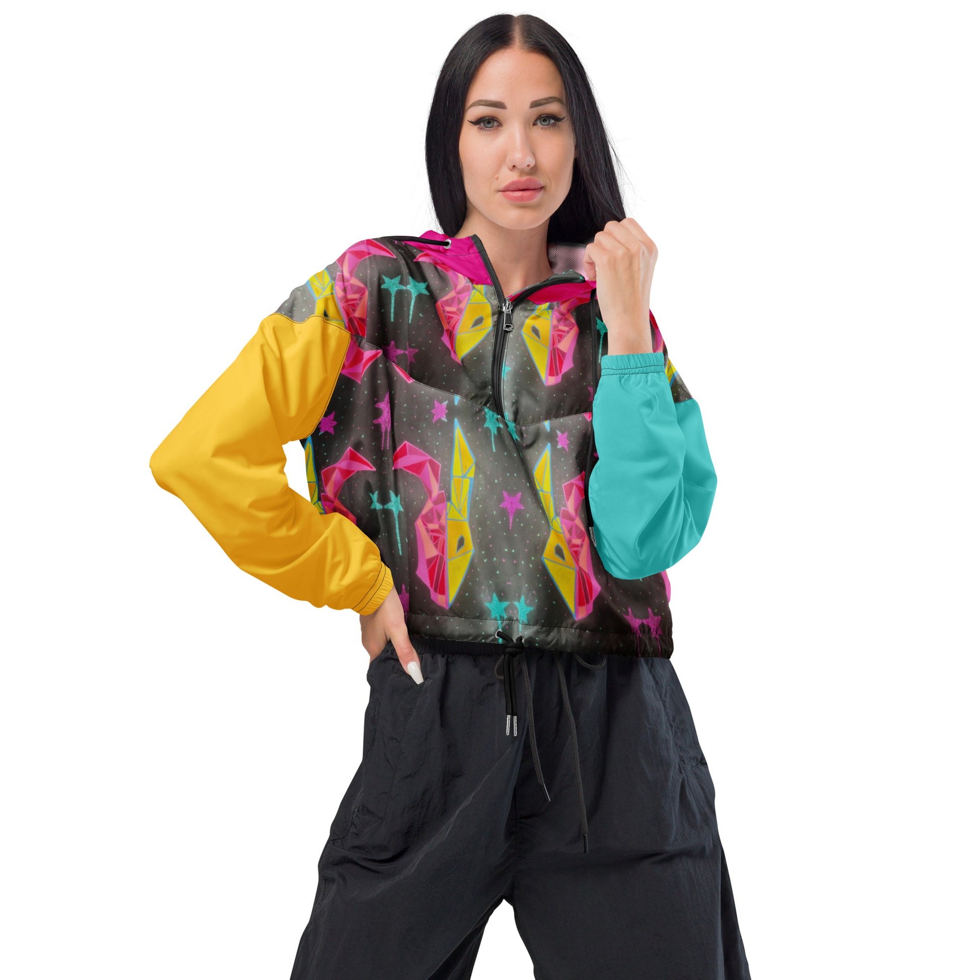 Hike in style without the rain getting in the way—this cropped windbreaker is lightweight, waterproof, and suitable for every kind of adventure. Features include side-slit pockets, breathable mesh lining, and adjustable drawcords on the hood and waist to support all your stylish outdoor looks.